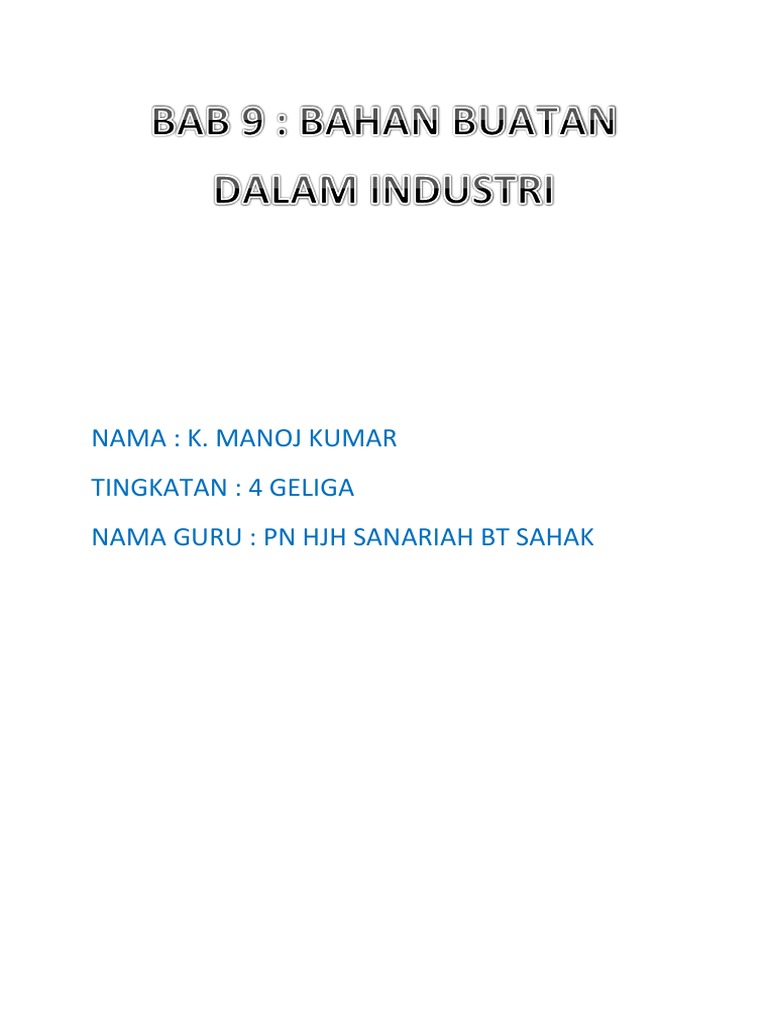 Sains tingkatan 4 bab 9. Lagu kimia formula ion logam melodi: Memudahkan sye dan rakan2 memahami kimia. Bab 5 metabolisme dan enzim. Bahan buatan dalam industri 9.1 memahami pembuatan asid sulfurik 9.2 mensintesiskan pembuatan ammonia dan garamnya 9.3 memahami aloi 9.4 menilai kegunaan polimer sintetik 9.5 mengaplikasikan kegunaan kaca dan.