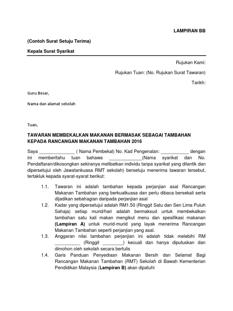 Surat Setuju Terima RMT from imgv2-1-f.scribdassets.com Pelantikan kapolri yang baru akan dilakukan sebelum masa tugas kapolri idham azis berakhir pada akhir januari 2021, demikian bunyi. Pelantikan pengurus osis ketika upacara bendera bisa dilakukan sebelum pembina upacara (kepala sekolah) memberikan amanat penandatanganan berita acara pelantikan dan serah terima kepengurusan, kepala sekolah, ketua osis periode 2018/2019, dan ketua osis periode 2019/2020. Mengesahkan penerimaan sesuatu tawaran berasaskan. Jika kedua belah pihak telah setuju dengan serah terimanya maka tinggal memberikan tanda tangan. Surat pelantikan adalah dokumen yang mengikat secara sah yang mengesahkan bahawa organisasi telah menawarkan kedudukan kepada pekerja dan mereka telah menerima syarat dan perjanjian sebagai pertukaran gaji. Sekiranya bahagian/unit berkenaan kekurangan pegawai, pelantikan boleh dibuat di kalangan pegawai daripada bahagian/unit lain. Sehingga penyewa maupun pemilik tidak perlu khawatir akan adanya kecurangan atau penipuan setelah transaksi berlangsung. Dalam hal ini kita akan tetap membahas mengenai contoh surat yaitu yang berhubungan dengan hak milik.